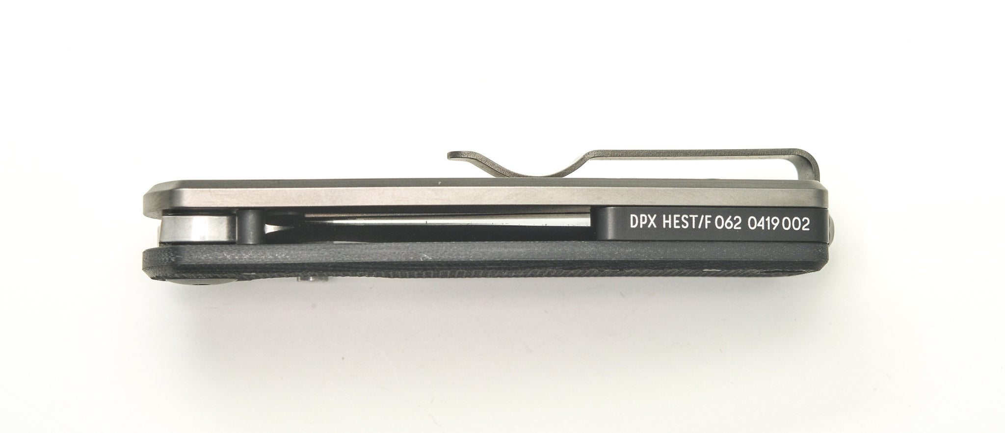 - Fully reversible, deep carry pocket clip. A deep pocket clip bent from heat treated grade 6 Ti alloy means your pocket knife rides as low and unobtrusively as possible in your pocket. The angle of the clip over the frame lock adds additional support to the lock. The DPx HEST/F Urban is made from not just durable materials, but stain free materials. Even the clip, screws and hardware are designed to take harsh environments with ease.