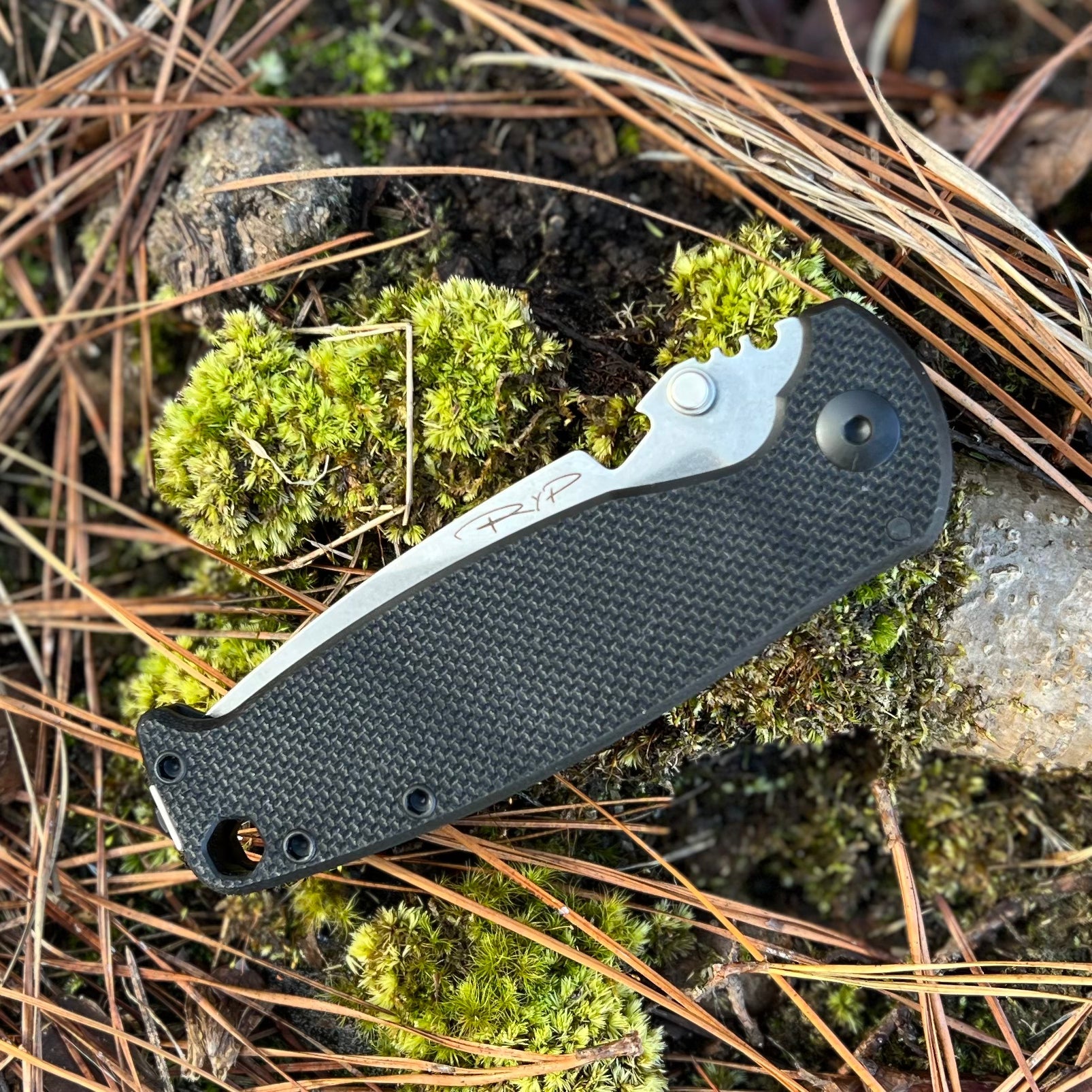 • Sandblasted, gunmetal black TiCN PVD coated 6Al4V Grade 5 titanium alloy frame lock